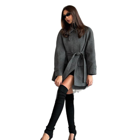 Ladies Polyester Trench Coat – Stylish Lace-Up Front Jacket