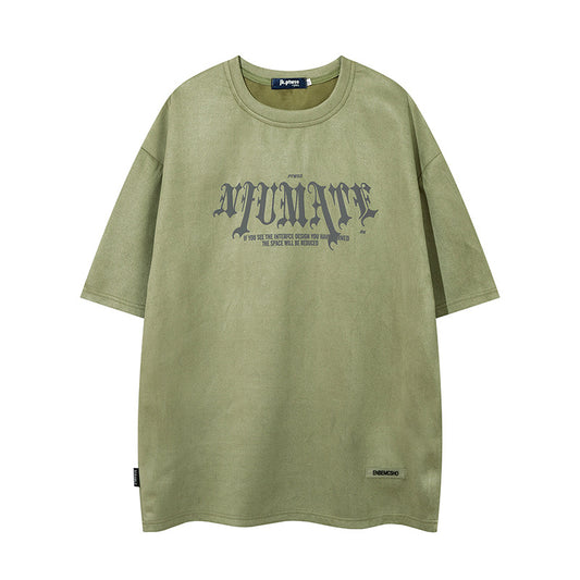Men’s American Retro High Street Velvet Puff Print T-Shirt – Deerskin Fabric Short Sleeve Streetwear Tee