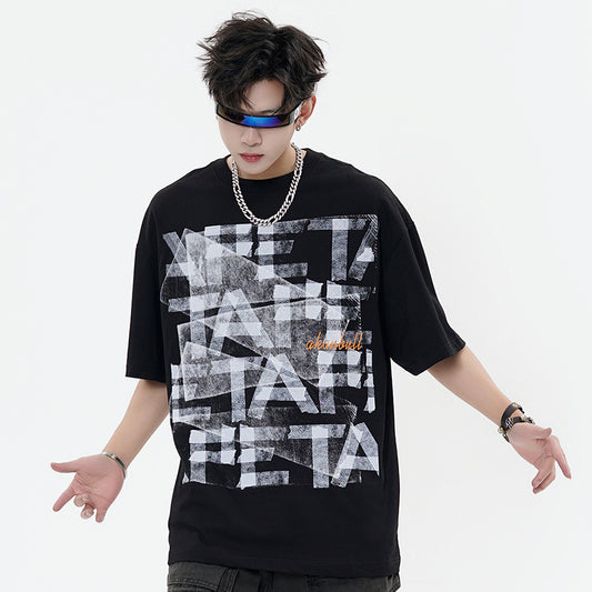 Unisex Letter Print Loose T-Shirt – Casual Top for Men & Women