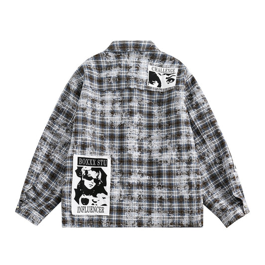Vintage Distressed Plaid Jacket Women – Casual Checkered Trendy Outerwear