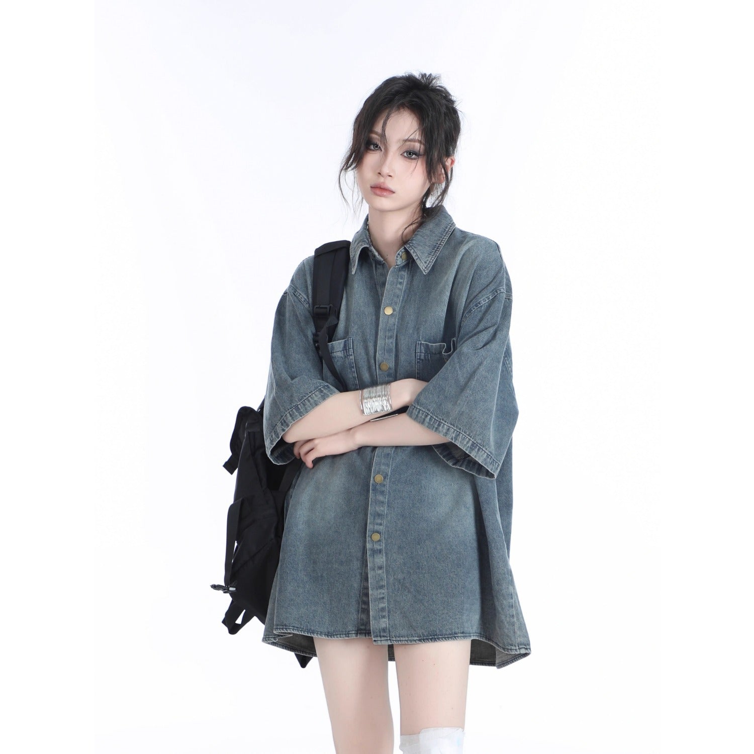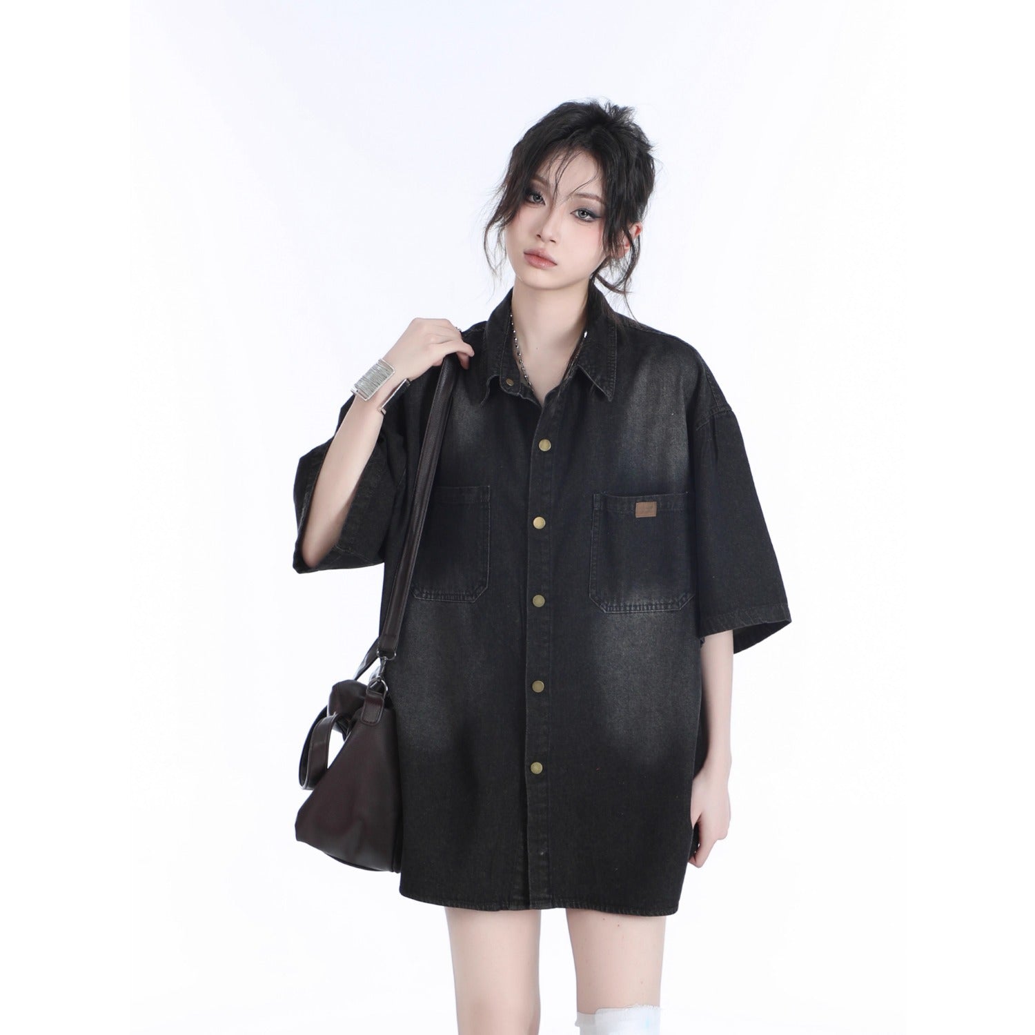 American Retro Heavy Wash Denim Short Sleeve Shirt – Vintage Washed Casual Streetwear